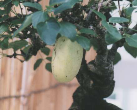 アケビ科の蔓性の落葉潅木。山地に生え、葉は五小葉からなる複葉。4月頃淡紅紫の花をつける。俵型の果実は淡紫色で長さ約10cm。秋熟して白色半透明で多数の黒色の種子を含み甘く美味。蔓で椅子、籠などを作り、茎の木部を利尿剤、頭痛薬とする。(広辞苑より)