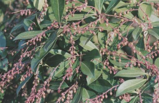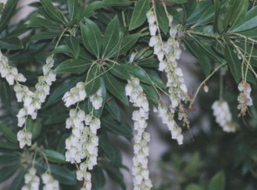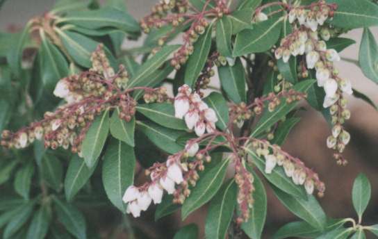 ツツジ科の常緑低木。樹皮は赤黄色葉には小さな鋸葉がある。早春にスズランのような白い壷状の花が咲く。この葉を馬が食べると足がしびれて昏睡することからアシビと言うながある。 (広辞苑より)