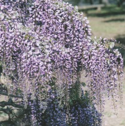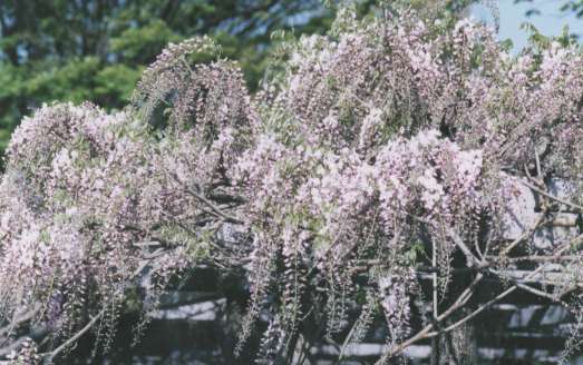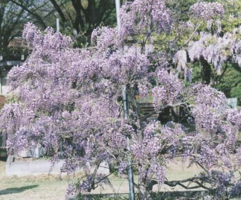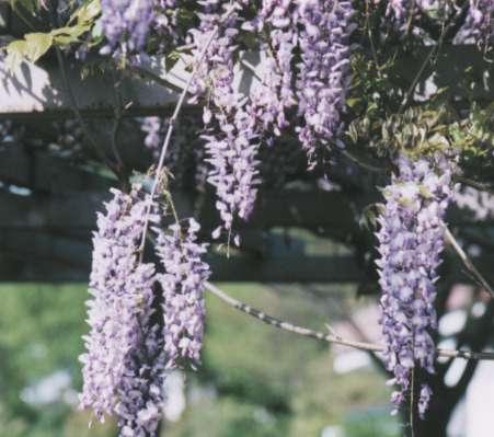 マメ科の落葉樹。山野に広く自生し、又観賞用に栽培。幹の長さ10m以上。蔓状に植物にからみ右巻き。葉は羽状複葉。5,6月頃に淡紫色又は白い蝶形の花をつけ花穂を垂れる。蔓は強靭で縄の代用等各種の用に供する。(広辞苑より)