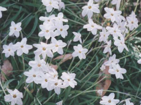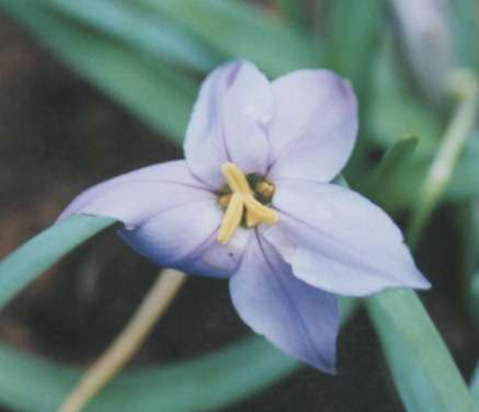 ユリ科の球根植物。南米原産。葉は緑色扁平で、傷をつけるとニラに似た臭いがする。花は白色6弁、星形に平開し紫色の脈が目立つ。非常に丈夫でしばしば野生化する。(広辞苑より)