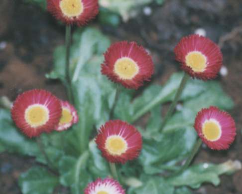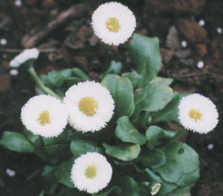 キク科の多年草。エーロッパ原産で広く観賞用に栽培。高さ10cm。葉はヘラ状。春、葉間から花軸を抜き、白色又は帯紅色の花を開き、秋頃まで絶えず咲く。イタリアの国家とされる。(広辞苑より)