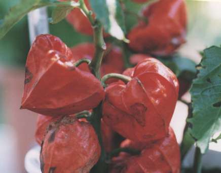 ナス科の多年草。茎の高さ60〜70cm。葉は卵状楕円形。春葉脈に黄緑白色の花を開き夏球状の液果が嚢状に膨大し、赤熟す。果実は小穴を開けて種子を除いて空にし女子が吹き鳴らして玩具とする。根を鎮咳、利尿薬に使用。(広辞苑より)