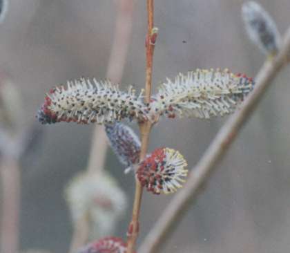 ヤナギ科の落葉潅木。水辺に叢生、高さ0.5〜2m。葉の下面は白色。雌雄異株。春、葉のまだ出ないうちに黄白色の花を穂状につけ、雄雌花ともに銀色の毛を密生。ネコヤナギ、エノコロヤナギ。(広辞苑より)