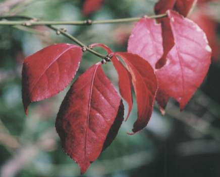にしきぎ科にしきぎ属の落葉低木。全国に分布する。春、4弁の花をつける。秋、紅色の小さな実をつけ、葉は紅葉する。