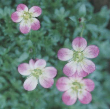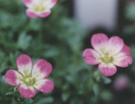 ユキノシタ科ユキノシタ属の多年草。ヨーロッパ原産。 3〜4月に花開く。 花径1〜2センチ、葉先は3っに分かれ先は尖る。高さ20cm。色はピンクや赤がある