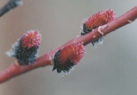 揚柳(カワヤナギ)の突然変異種とか。 揚柳はヤナギ科の落葉潅木。水辺に叢生。高さ0.5〜2m。葉の下面は白色。雌雄異株。春、未だ葉の出ないうちに黄白色の花を穂状につけ、雄雌はなとも銀色の毛を密生。ネコヤナギ、エノコロヤナギ。 (広辞苑より)