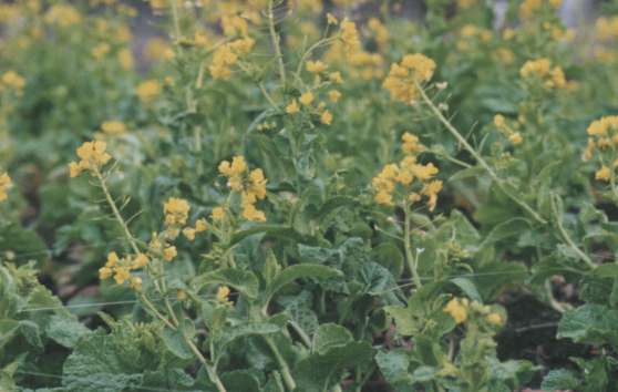 アブラナ(油菜)、古くから栽培されているアブラナ科の2年草。春、黄色の十字花を開く、果実は細長く、中に黒い種子が一列に並ぶ。種子からとった油が菜種で燈用、機械用となる。野菜の小松菜、白菜などもこの種の変種。(広辞苑より)