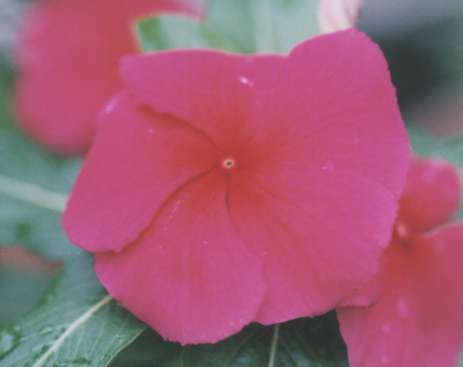 キョウチクトウ科の一年草。西インド原産。高さは60cm。葉は長楕円形。晩夏から茎頭に淡紅色の花をつける。日日花、(広辞苑より)