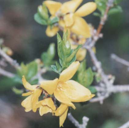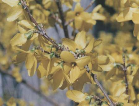 モクセイ科の落葉潅木。中国原産。古くから観賞用に栽培。高さ2m。枝は長く伸びて先端はやや垂れる。葉は長楕円形。早春葉に先立って鮮黄色、4弁筒状花を開き美しい。これに似て別に中国から輸入されたシナレンギョウ、朝鮮レンギョウも稀に栽培。(広辞苑より)