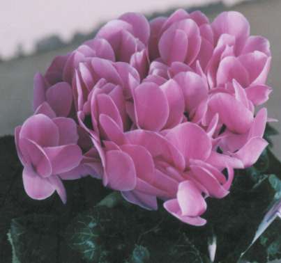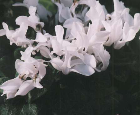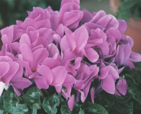 サクラソウ科の多年草。シリア原産。地下に球茎があり、長い柄のある心臓形の葉を出す。葉には白斑があり、裏面は光沢のある紅紫色。春花は下向きに開花し、花弁は5弁で反り返り、白、紅、八重・一重などがある。鉢植えとして温室で栽培。園芸種が多い。カガリビバナ、豚の饅頭。(広辞苑より)